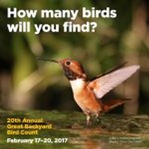 The public is invited to participate. For at least 15 minutes on one or more days of the count, February 17-20, 2017, you simply tally the numbers and kinds of birds you see. You can count from any location, anywhere in the world, for as long as you wish. For more information go to birdcount.org.